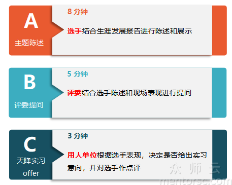 赛道设主题陈述、评委提问和天降实习offer(实习2意向)环节。
