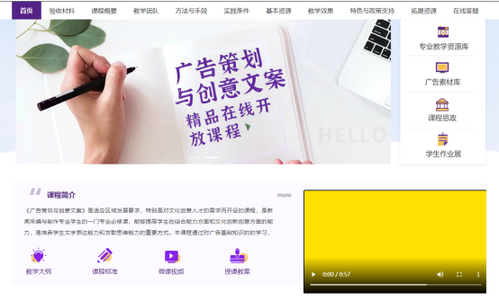 精品在线开放课程(高职)网站案例解析——《广告策划与创意文案》