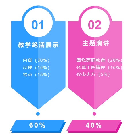 总决赛现场绝学展示占比60%,主题演讲占比40%。因此,老师要侧重现场绝学展示部分,要能体现专业老师深厚的教学功底,在展示当中突出特色,小编建议各位老师做好提前演练,保证流畅度。主题演讲围绕高职教育发展主旋律展开。在现场当中,也要求老师对演讲内容熟练,言行举止自然。
