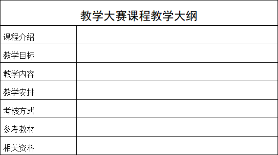课程教学大纲需反映老师们的教学思想、课程设计思路和教学特色。此外,还需按照模板去填写,课程教学大纲的模板如下: