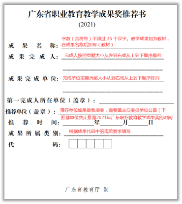 2021广东省职业教学成果奖推荐书填写要求