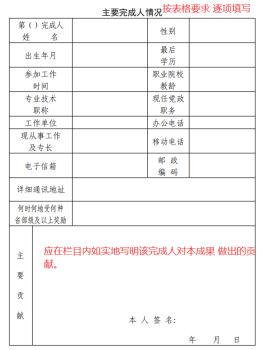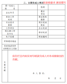 接着,在填写推荐书第二大部分的主要完成人情况时,若主要完成人不只一人的,可自行增加该表格,按一人一表填报。主要完成人情况是核实推荐 2021 年广东职业教育教学成果奖主要完成人是否具备获奖条件的依据,教师应真实填写表格。