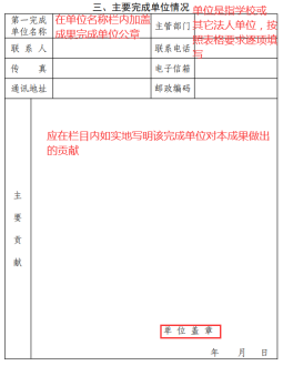 然后,在填写推荐书第三大部分的主要完成单位情况时,主要完成单位不只一个的,可自行增加该表格,按一单位一表填报。主要完成单位情况是核实推荐 2021 年广东职业教育教学成果奖主要完成单位是否具备获奖条件的依据,单位应按照要求如实填写。