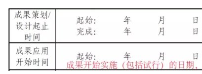 成果开始实施(包括试行)的日期。