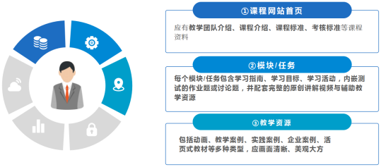 课程网站应结构完整,网站的文本类资源不超过50%,教师应多使用信息化教学资源,增大多媒体类资源如动画、微课、视频等资源比例。