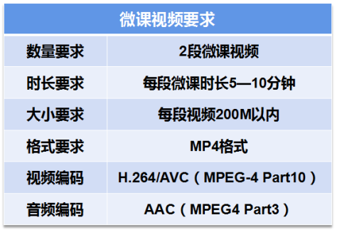 教师需要准备2段微课视频,关于微课视频的具体要求如下: