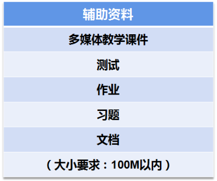 辅助材料的形式不限,教师可提供学生学习该微课视频所需的课件、作业、习题、文档等配套资料,辅助资料的大小在100M以内。