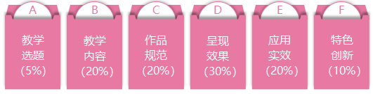 最后,在作品的呈现效果上看,形式要新颖、过程要精彩、目标需达成。这要求界面精彩有趣、能吸引学生;构思新颖,教学方法富有创意,不拘泥于传统的课堂教学模式,类型丰富。设计理念先进,有效解决重点难点问题,教学过程深入浅出,具有较强的启发性、引导性。通用性好,交互性强,能够有效解决实际学习及教学问题,高效完成设定的教学目标。这方面的评分占比为30%,一定要注重。