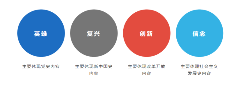 根据“四史”的具体内容分为以下这四个主题,围绕主题深入开展研究性学习和实践性教学活动: