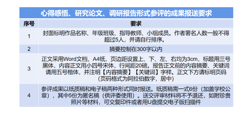 (一)以心得感悟、研究论文、调研报告形式参评的成果一般要包括封面、摘要、正文和附件。基本要求如下: