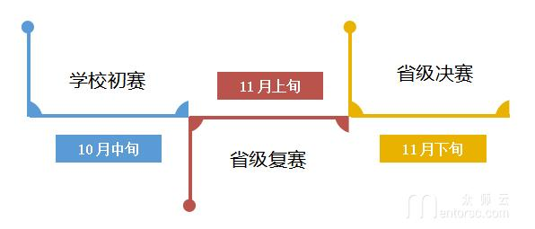 约10月中旬以前完成学校初赛,11月上旬完成省级复赛,11月中下旬完成省级决赛,其中省级复赛各组类的前30%进入省级决赛。