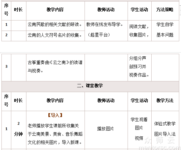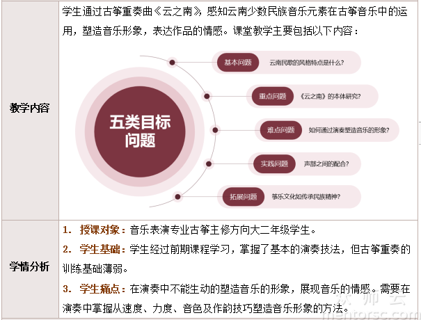 该篇教学设计是广东省第六届高校(本科)青年教师教学大赛的作品,名为古筝重奏之美《云之南》的演奏与教学,是文科组的音乐课程。