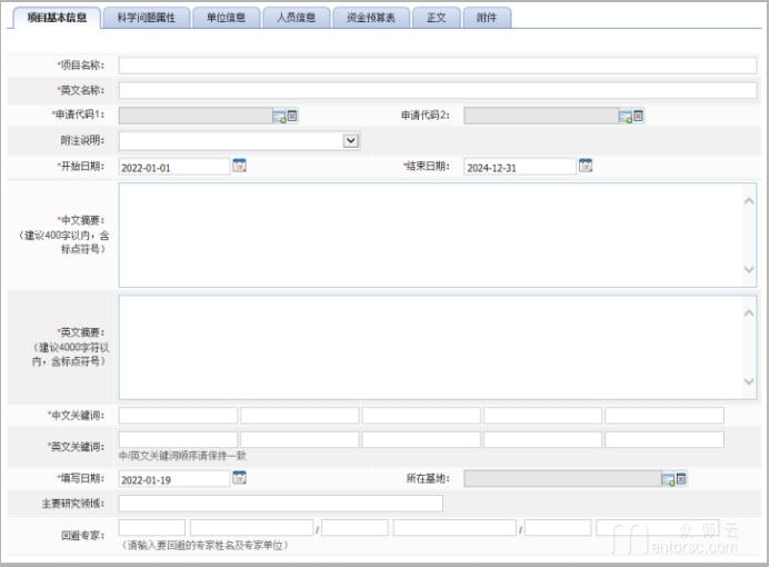 1.预申请:申请人登录国家自然科学基金网络信息系统(https://grants.nsfc.gov.cn)撰写预申请书,申请书页面如下所示。预申请字数控制在2000字以内。