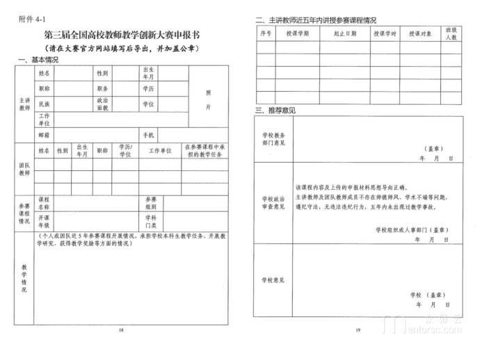 申报书的内容包括教师的基本情况,参赛课程情况和指导意见三部分,样表如下图所示: