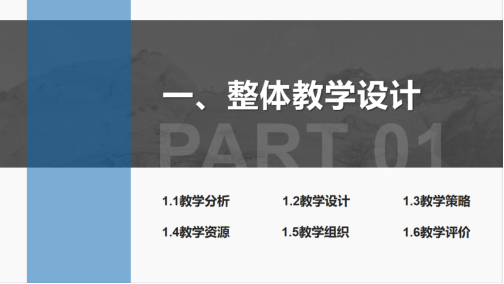 小编建议避免密集文字展现,内容提炼,抓住重心,合理运用图表,让教学实施汇报PPT更简洁美观。整个教学实施汇报要控制在6分钟以内,建议开场和整体教学设计部分的汇报,控制在1分钟的时间内。